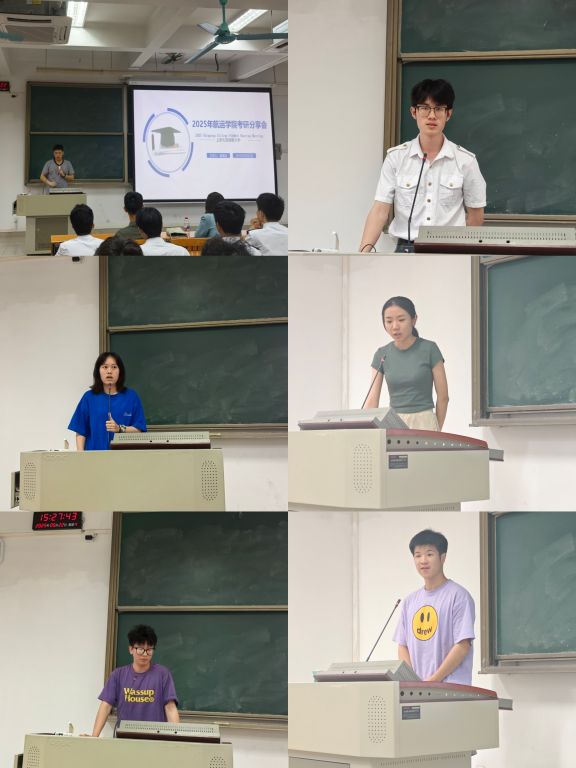 经验分享时,被大连海事大学录取的崔星灿同学从考研目的、自身优势以及备考方法等方面进行了阐述;被上海海事大学录取的洪琬祺同学强调合理划分各科备考时间段的重要性,还介绍了专硕与学硕的区别以及跨专业考研需要面对的困难;被大连海事大学录取的黄婉琪讲解了考研择校的方法和经验;被暨南大学录取的聂元辉同学重点介绍了考试心态调整、专业课程学习方法以及资源获取渠道;被上海海事大学录取的伍盛辉同学分享了考研动机、复习规划以及时间管理的心得体会。此外,成功申请世界QS排名前100的英国利兹大学的方可同学,从学业规划、留学申请流程、专业选择以及中介机构选择四个方面进行了讲解。