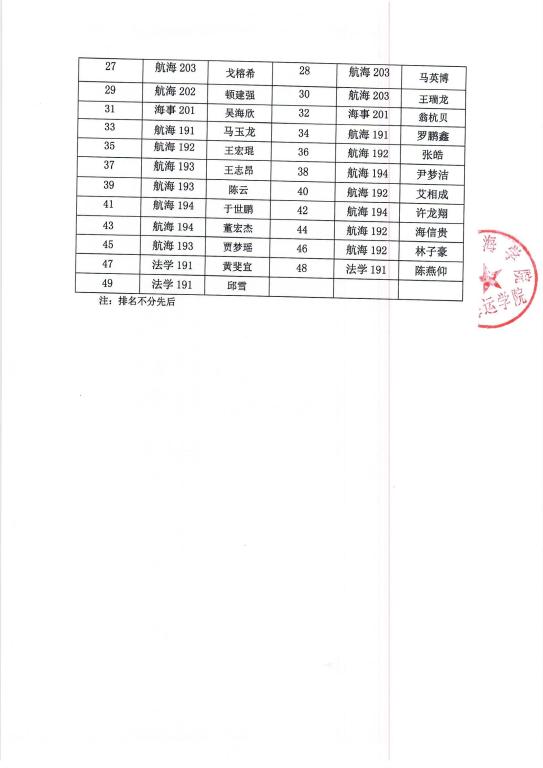 海运学院拟推荐2020-2021学年(2020年)国家励志奖学金公示