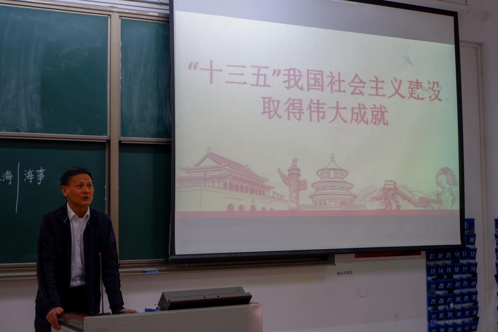 (海运学院供稿)3月25日下午,我校副校长兼海运学院院长唐强荣教授及海运学院党委书记施斌教授分别在建兵楼400室及102室向海运学院19级、20级全体学生讲授以《“十三五”时期我国社会主义建设取得伟大成就》为主题的“思政第一课”。