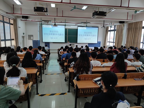 (海运学院供稿)3月31日下午,海运学院在健兵北101室召开学生日常事务沟通会。海运学院大队长林少栋老师、中队长张春艳、何淋、吴成结、陈岸斌等老师及海运学院各班学生代表参加了会议。