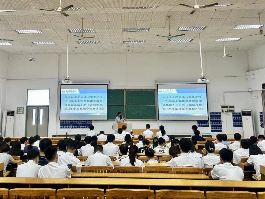 (海运学院供稿)为积极响应《国家学生体质健康标准》政策要求,提高同学们参加体育锻炼的积极性,增强同学们的身体素质,10月19日下午,海运学院在教学楼111室召开2023年体测及校运会动员大会。海运学院大队长林少栋老师,中队长吴成结老师、叶振斌老师、陈岸斌老师、林恬恬老师出席会议,各班主要班委、党员、预备党员、入党积极分子参加本次大会。