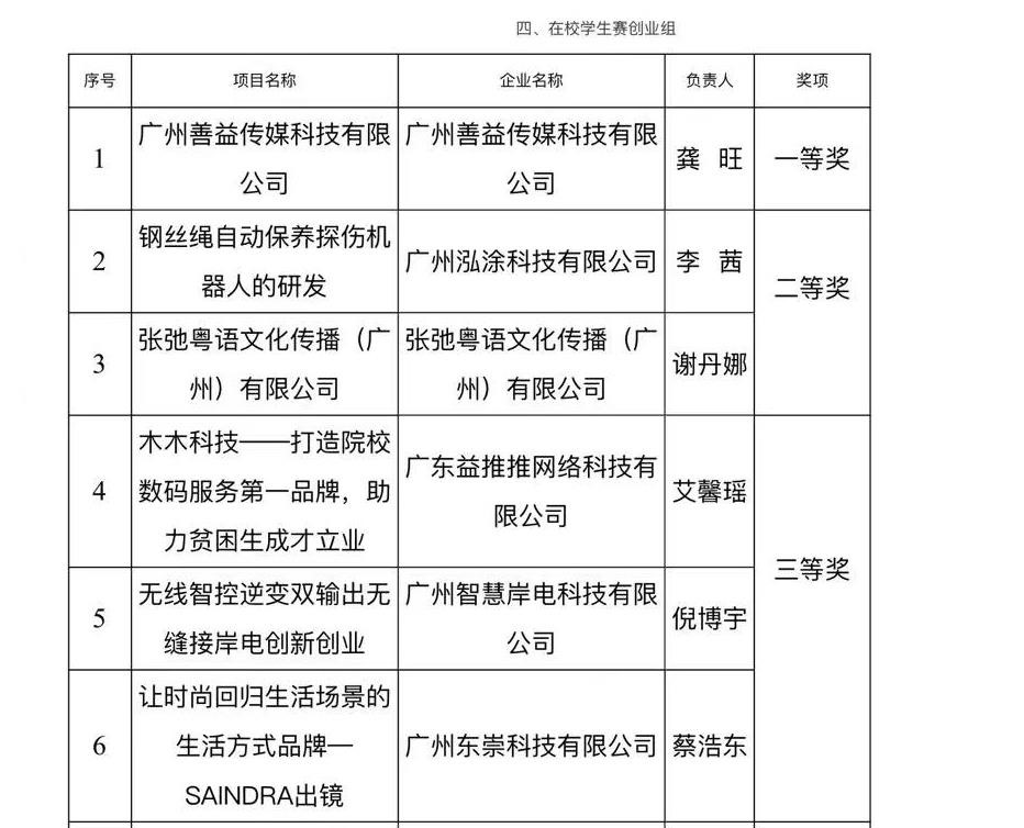 我校学生参加“青创杯”第九届广州青年创新创业大赛获三等奖