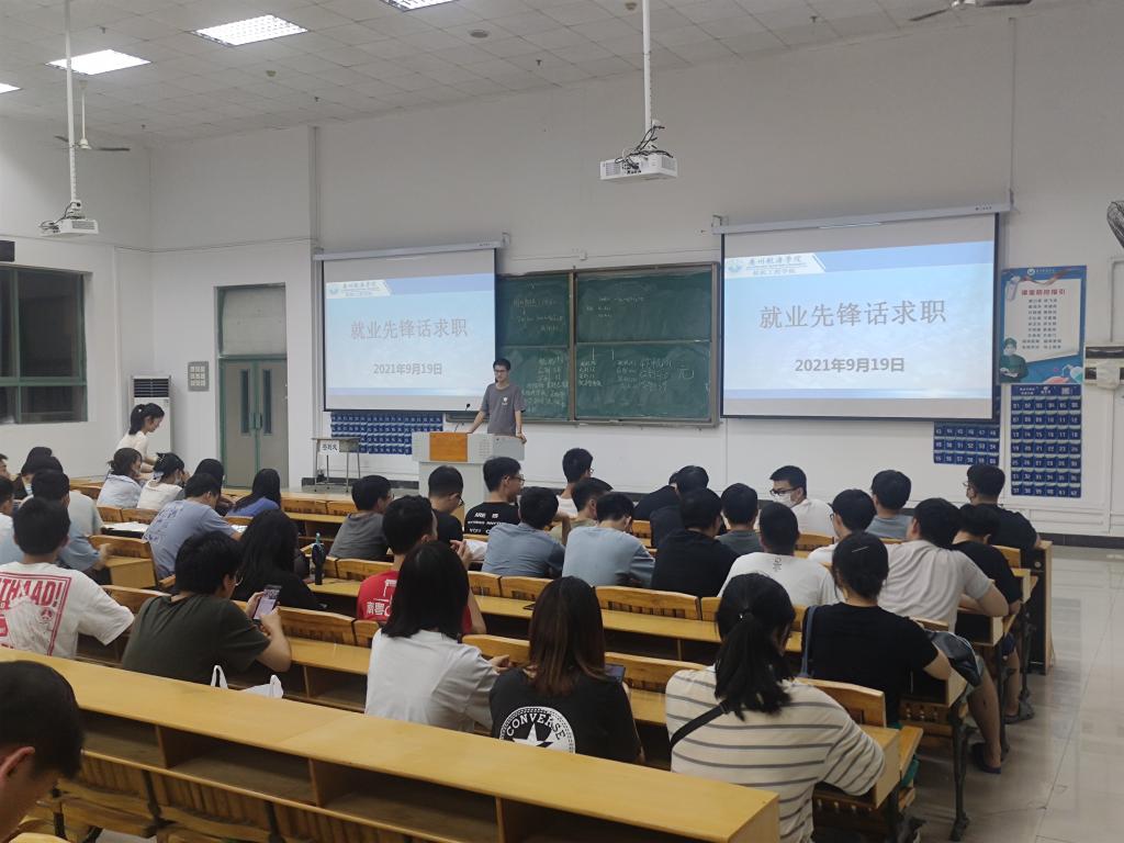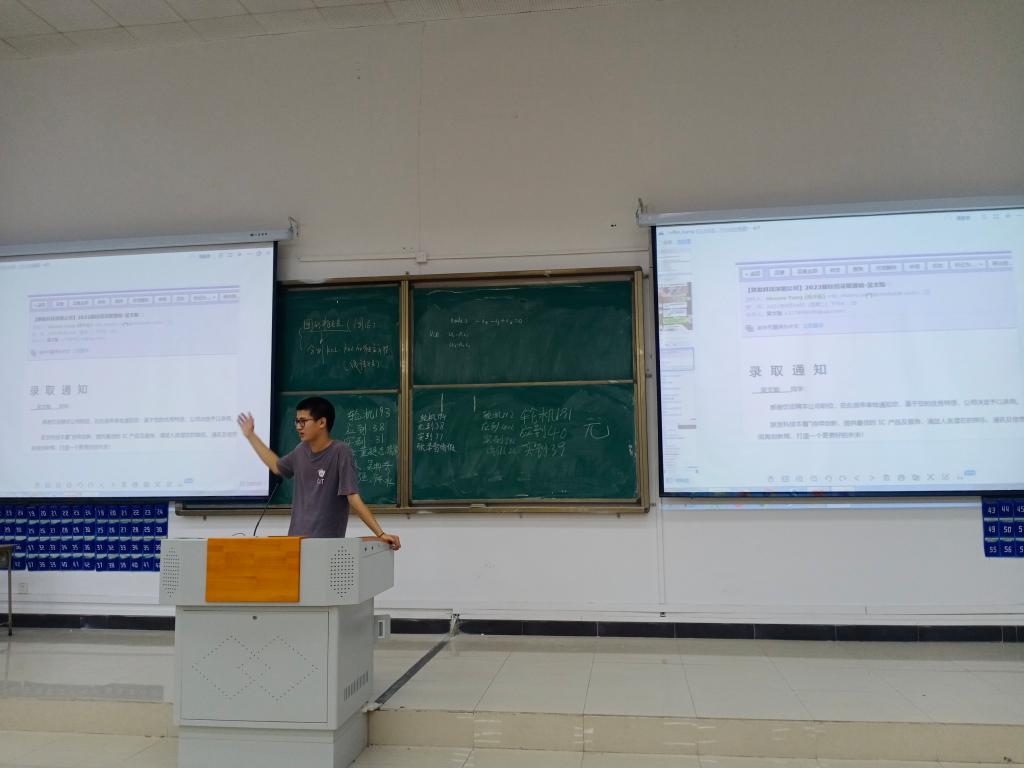 9月21日晚,教学楼111课室,轮机工程学院举办主题为“求职先锋话就业”分享会。本次分享的同学是轮机陆181吴文聪同学。该同学已在9月初收到联发科技股份有限公司录用通知。参加本次分享会的是轮机工程学院陆上专业四个班级的同学。