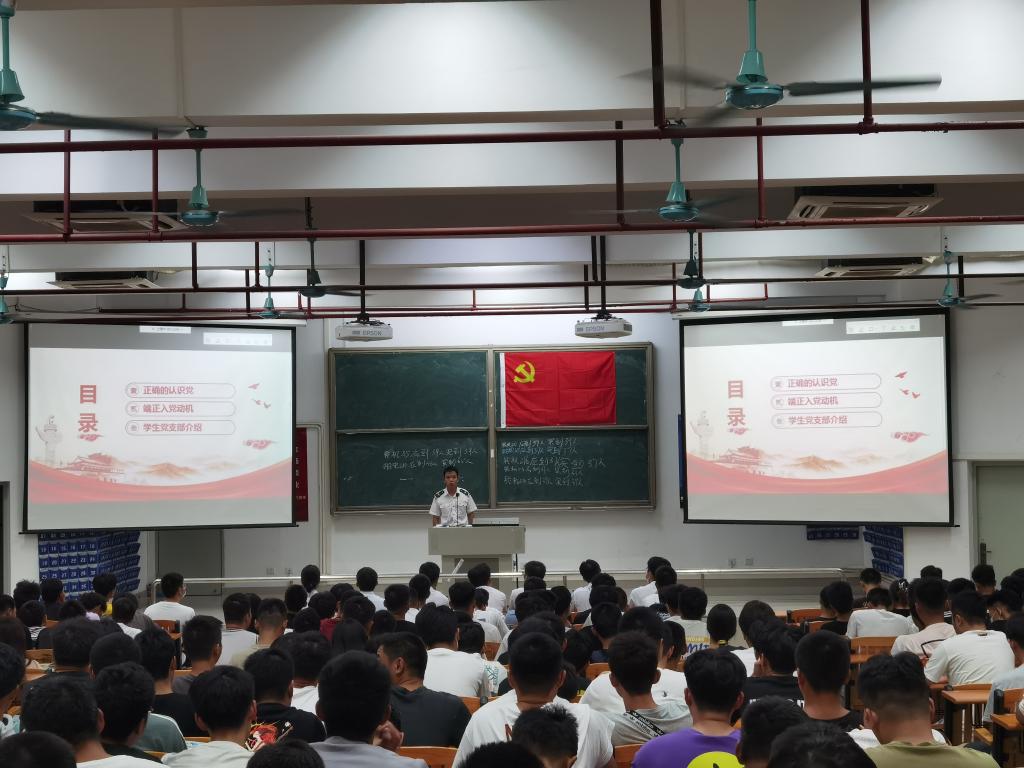 (轮机工程学院供稿)为加强学院学生对中国共产党的认识和了解,帮助学生端正入党动机,提高思想觉悟,引导新生积极主动向党组织靠拢,9月21日,轮机工程学院在健兵北400教室召开了2021级新生入党启蒙教育,学院两个党支部书记郭世俊、赵垒老师,2021级全体新生参加了教育活动。