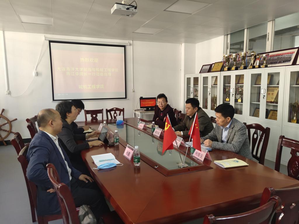 、学科专业、学院教师学历提升及师资情况作了总体介绍;叶伟强副院长就科研项目申报等方面进行了简单介绍,并希望两院之间今后进一步加强交流合作;沈伟林副院长介绍了学院专业人才培养、教学管理等方面的工作。隋江华院长介绍了大连海洋大学航海与船舶工程学院的基本情况以及此次调研的主要目的。她认为轮机工程学院的专业建设特色鲜明,专业、学科课程设置等方面有很多工作经验和方法值得学习借鉴,希望以后双方加强沟通交流,能在专业建设和师资建设等方面开展合作。会后,双方就相关问题展开了热烈讨论,达成了初步合作意向。