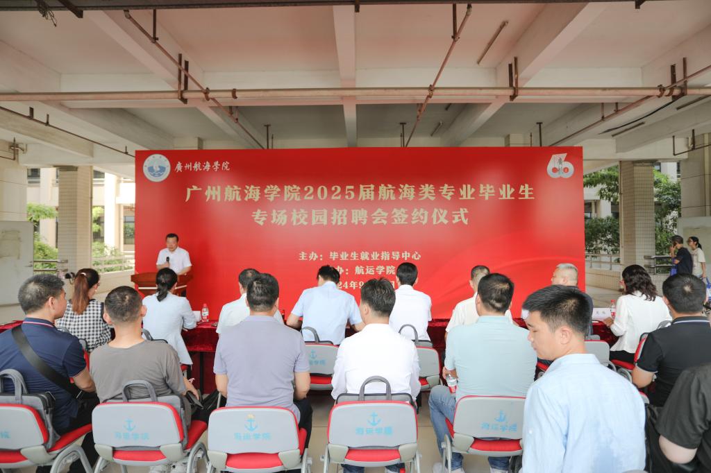 9月20日下午,在健兵楼一楼举行了简约而隆重的2025届航海类专业毕业生专场校园招聘会签约仪式,唐强荣副校长出席签约仪式,党委学生工作部部长、毕业生就业指导中心主任黄咸强,校友工作部部长郑苗,69书吧