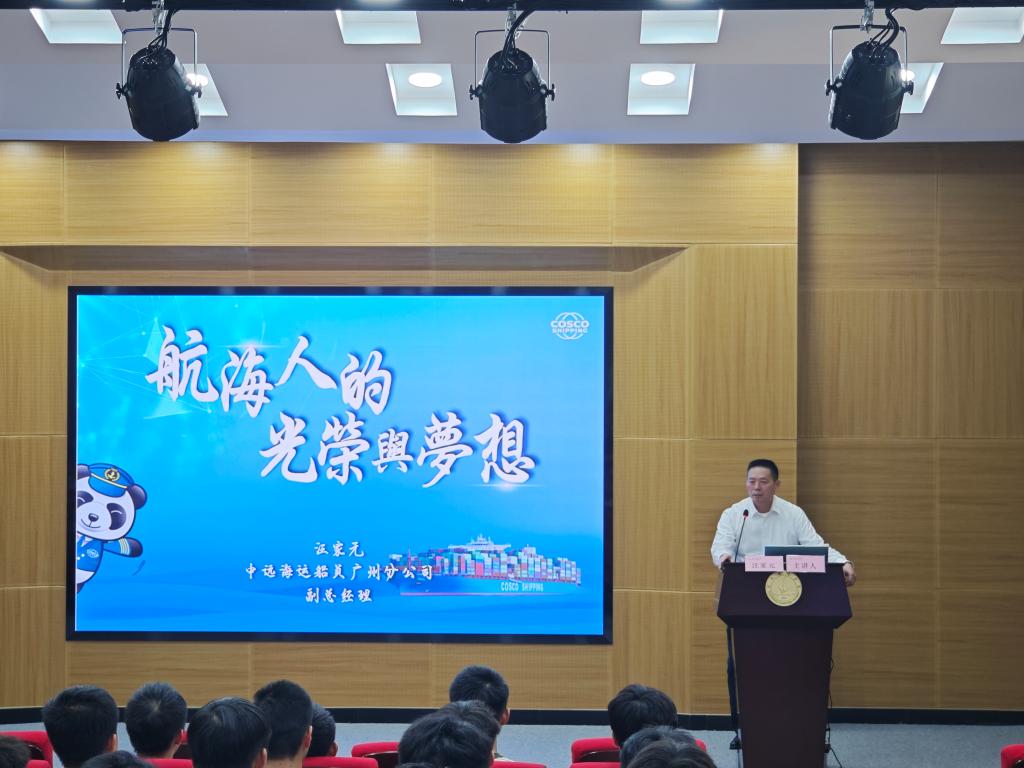 在分享现代航海技术的飞速发展以及我国航运业在全球的重要地位时,汪家元提到,如今的航海领域充满了机遇与挑战,勉励同学们要不断丰富知识储备,掌握新职业技能,以适应国家和航运业发展的需求,为未来投身航运事业打下扎实的专业基础。
