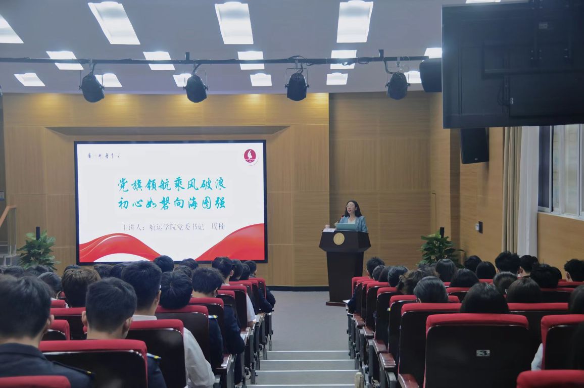 课程以习近平新时代中国特色社会主义思想为根本遵循,阐释了加强和坚持党的领导的理论逻辑、历史逻辑和实践逻辑,系统梳理了海洋强国战略提出的背景、核心任务、实现路径与重大意义,强调建设海洋强国是推进民族复兴的必然要求。同时结合红色校史,带领大家回顾了学校61载与国同行的红色基因,并以多名各行各业杰出校友的先进事迹诠释广航人“蓝色信念”的精神内核,印证广航人与海洋强国战略的必然联系和使命担当。最后,周楠向广大青年学子提出“知行合一,笃定航向跟党走”的9点行动指引,号召大家能以优秀校友为榜样,秉持“勤学、善思、厚德、求新”的校训,将专业素养与“向海图强”的信念融合,在海洋强国的征程中发光发热。