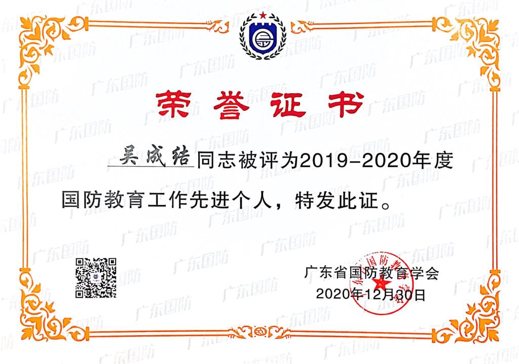 中队长-吴成结-2019-2020年度国防教育工作先进个人